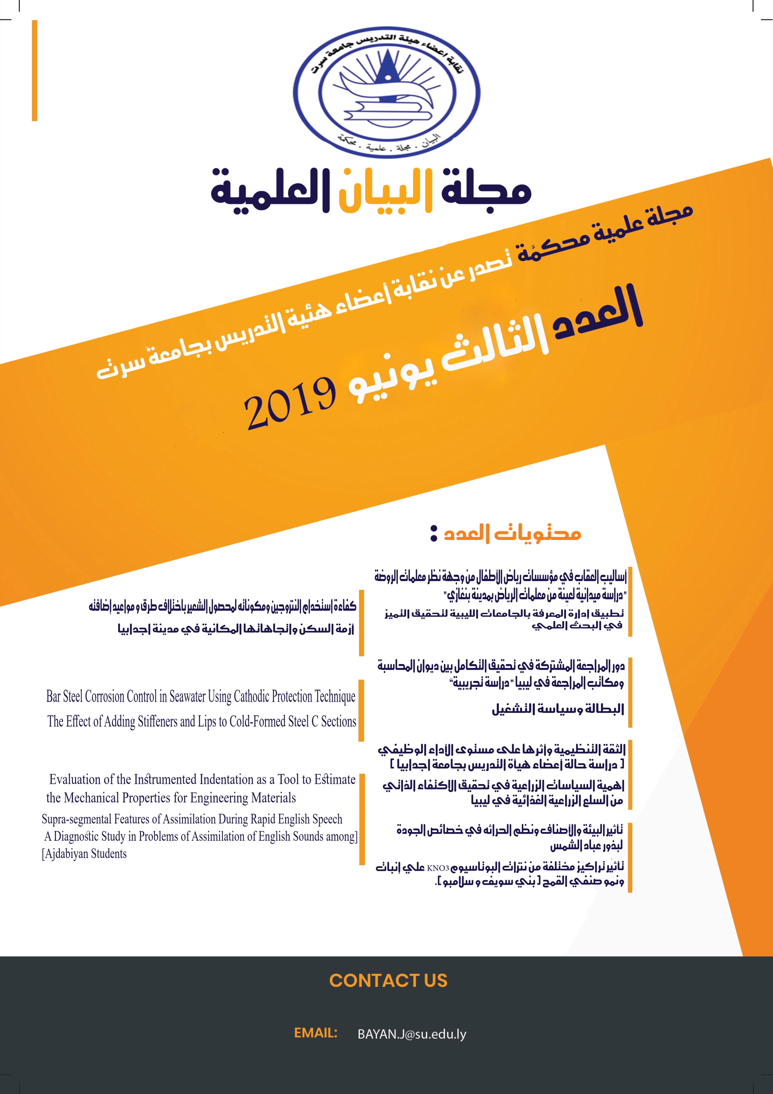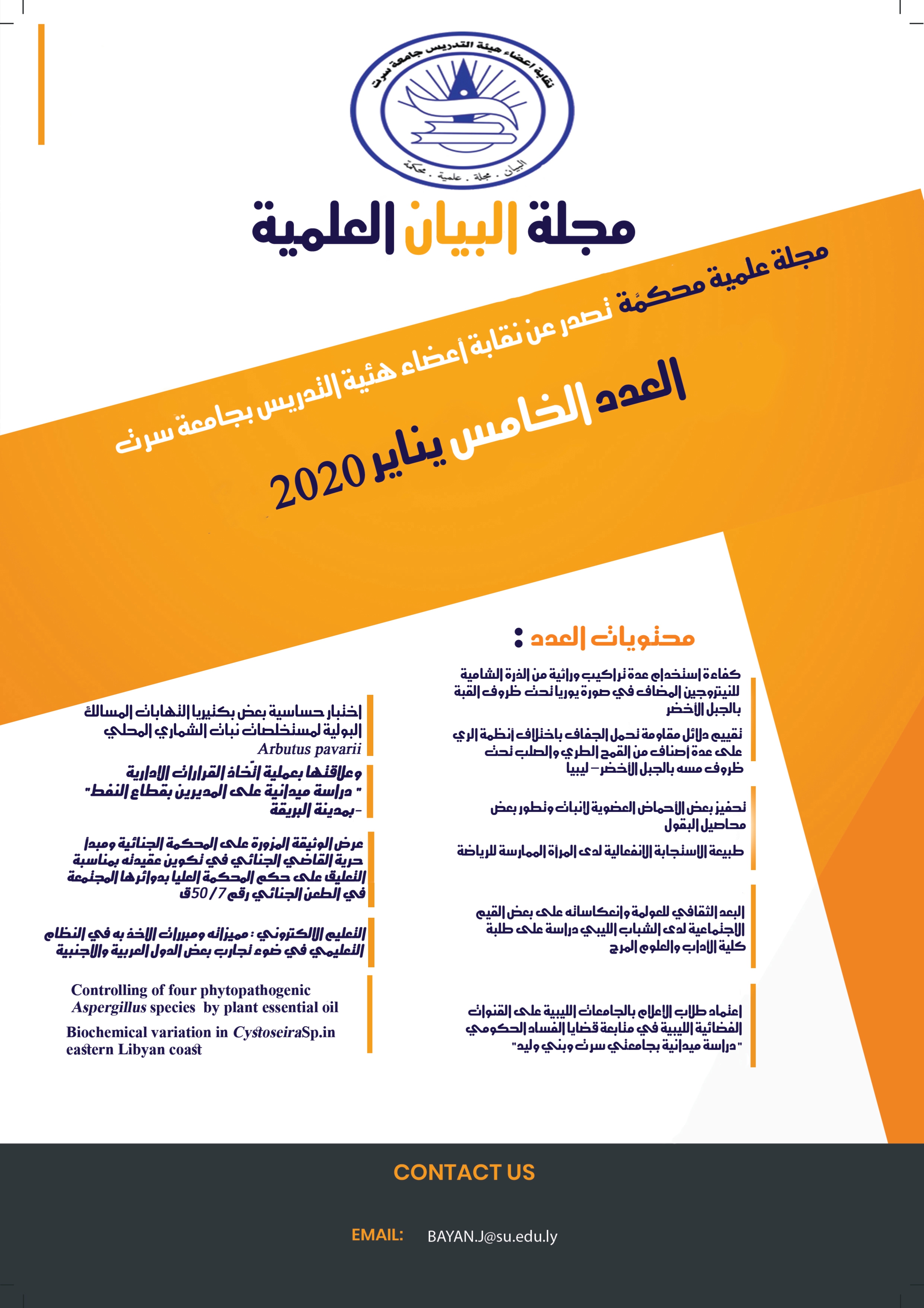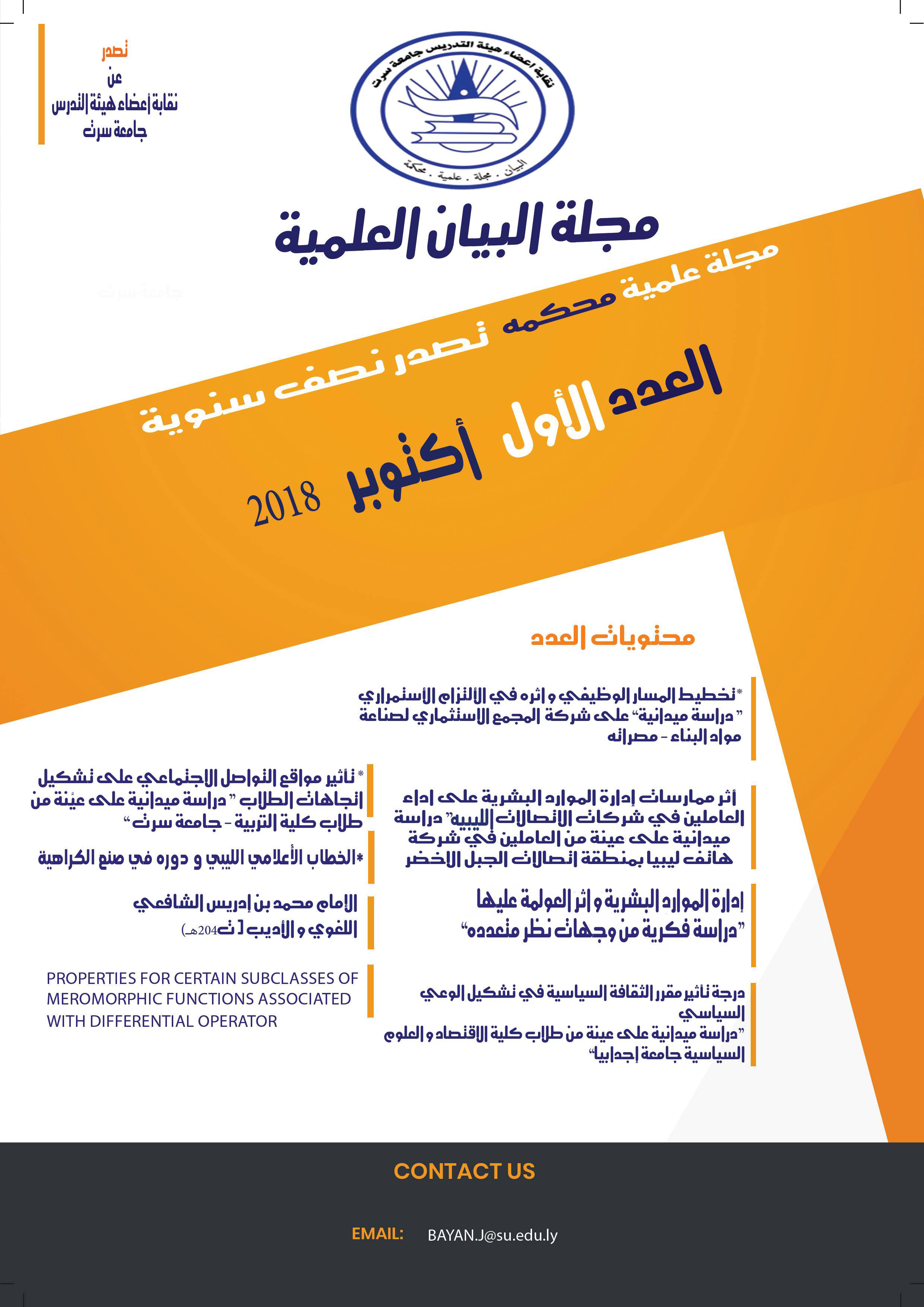 مجلة البيان العلميَّة المحكّمة تصدر نصف سنوية عن نقابة أعضاء هيئة التدريس بجامعة سرت